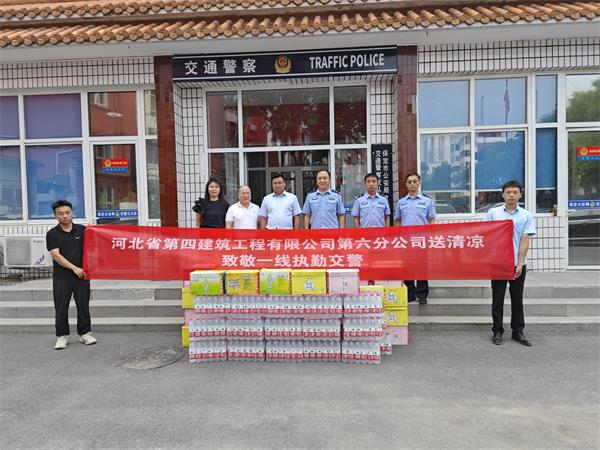 7月4日,四建六分公司启动了“夏日送清凉 致敬一线执勤交警”公益活动,前往保定市公安局交通警察支队三大队,向“最可爱的人”送上一份夏日的清凉与关怀。